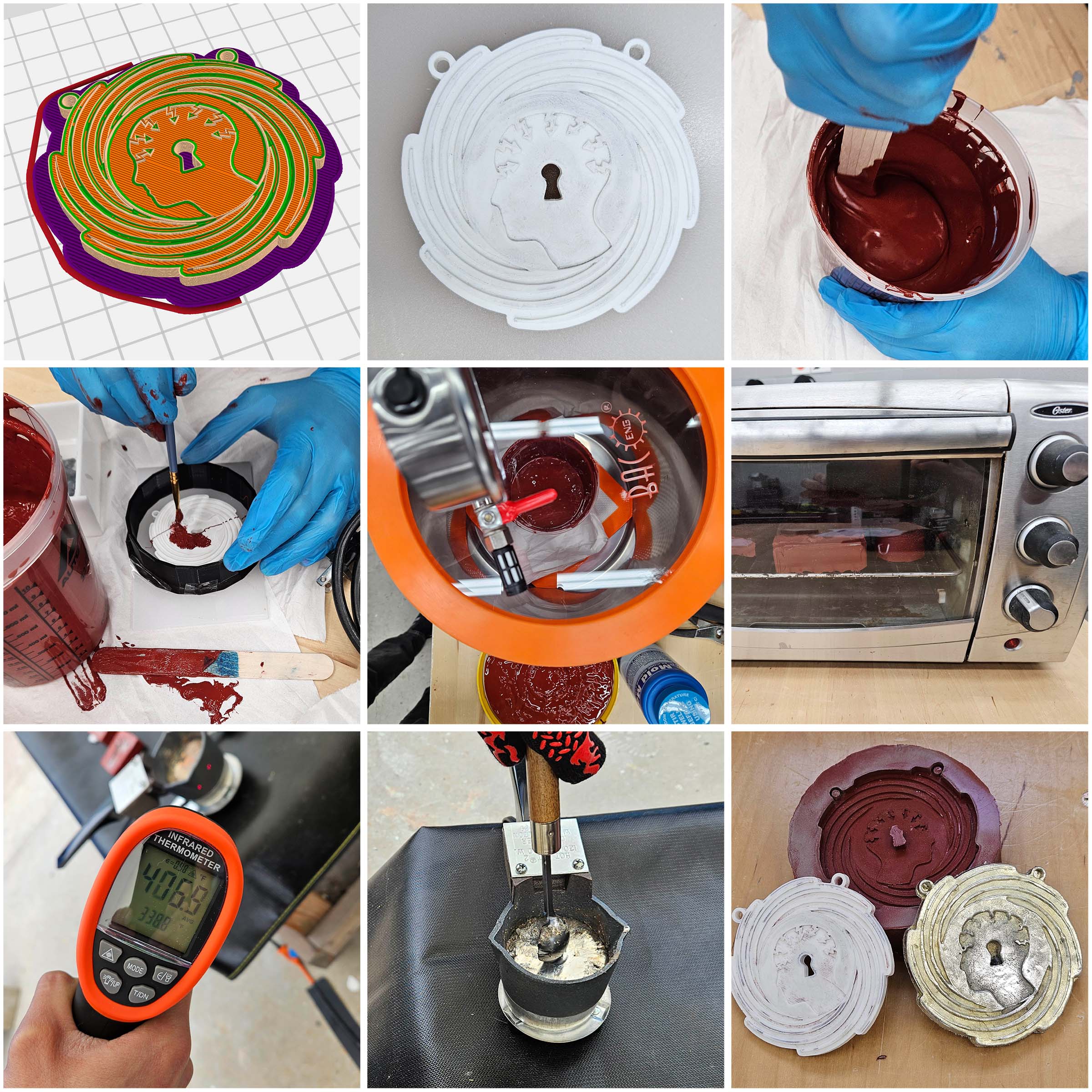 Pewter casting steps: 3D print, mold making, melting and pouring metal