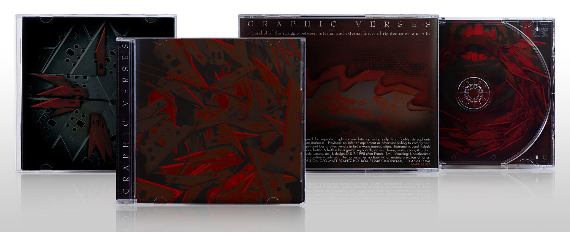 I have extensive experience designing album covers, promotional graphics, and file preperation for commerical printing. I have worked with a variety of record labels, bands, and solo acts. Genres include rock, pop, heavy metal, industrial, electronic, jazz, singer/songwriter, and folk/county. Unless otherwise noted in the captions, the examples below include my photography, illustration, design, and layout.